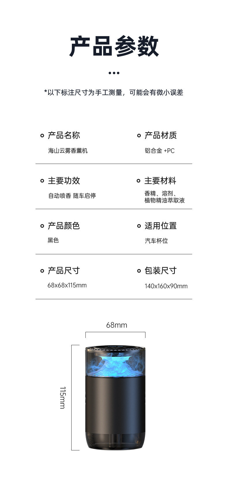 海山云雾车载香薰汽车香水车内装饰品摆件香氛车用扩香除味茶香