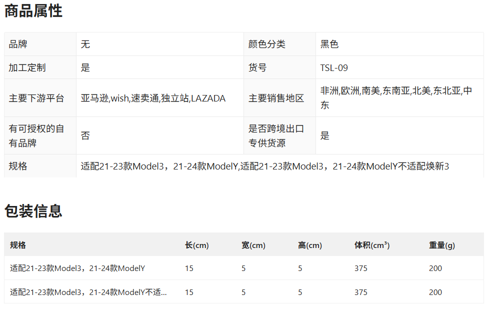产品参数